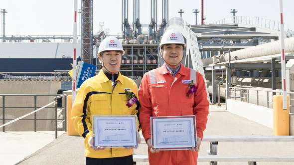 开云网页版·官方页面网站-开云(中国)和国家管网天津接收站共同举行了开云网页版·官方页面网站-开云(中国)首船LNG接卸和首车发车仪式。国家管网天津接收站总经理张林松和开云网页版·官方页面网站-开云(中国)智能贸易及输配业务群副总经理尹明分别代表双方互换纪念铭牌。